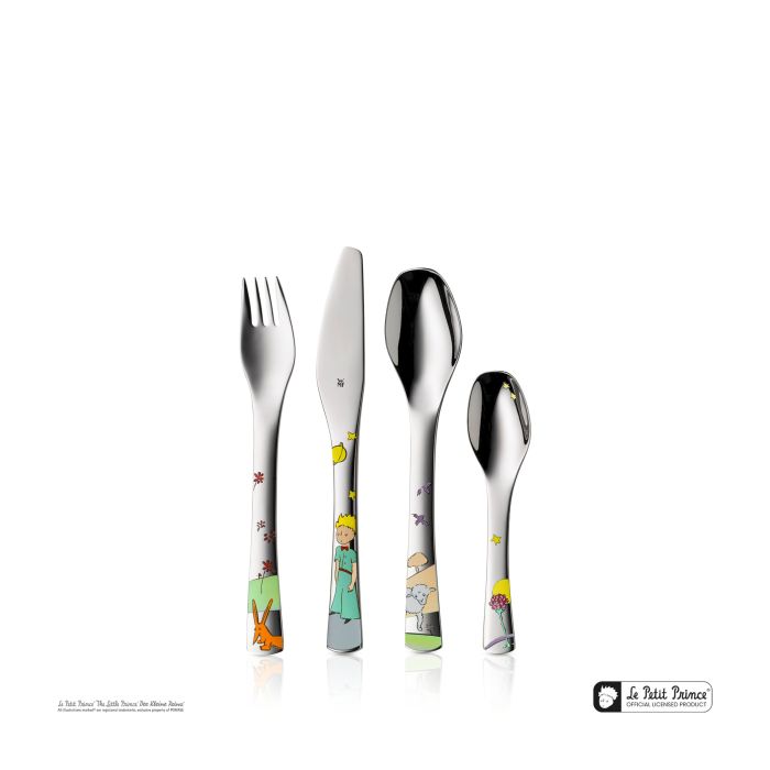 WMF dječji set posuđa, 4-dijelni, kolekcija Mali princ, Dizajn prilagođen djeci, Cromargan®: nehrđajući čelik 18/10, Siguran i ergonomičan, Prikladno za pranje u perilici posuđa, Od 6 godina i više 12.9405.6040