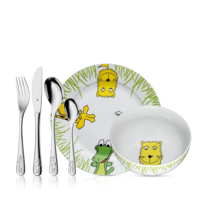 WMF-ov dječji komplet pribora za jelo, 6-dijelni komplet, Visokokvalitetni Cromargan®: nehrđajući čelik 18/10, Safari kolekcija, Dizajn prikladan za djecu, Siguran i ergonomski, Periv u perilici posuđa, Za djecu od 3 godine i stariju, 12.8002.9964